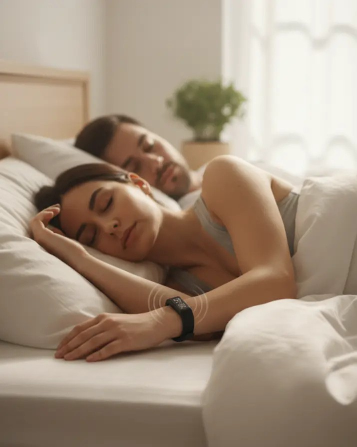 Grâce à ses vibrations douces et silencieuses, ce bracelet vous réveille personnellement sans un bruit. Votre partenaire continue de rêver paisiblement pendant que vous vous préparez pour une journée parfaite, sans stress ni culpabilité.